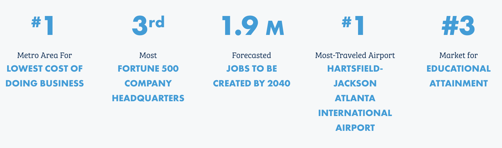 Atlanta has the third largest concentration of Fortune 500 companies.