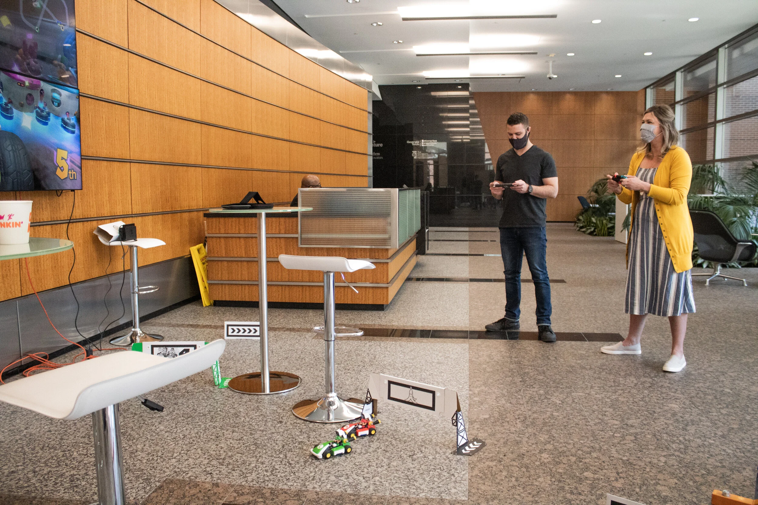 On Wednesday, March 10, community members stopped by the Centergy One lobby to celebrate Mar10 (Mario) Day – an annual holiday recognizing the entire fan-favorite franchise. Hosted by Tech Square ATL (TSQATL) Social Club, the Mario Party Coffee Talk (which is a great way to catch up and caffeinate with other community members) included a variety of different video games to play – from the newest Mario Kart with augmented reality (AR) to throwing it back with some retro nostalgia – and of course, some piping hot coffee.