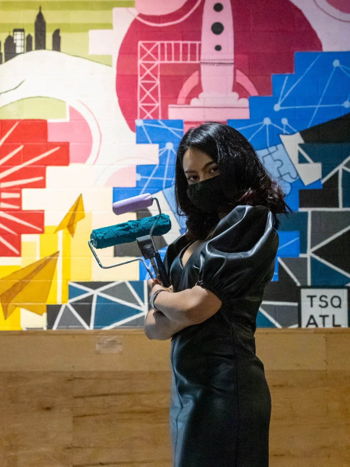 Two words: innovation and community. Seemingly par for the course, as they are discussed here quite often, it’s those two words that inspired the creation of a 19-foot mural project between long-time partners, Tech Square ATL (TSQATL) Social Club and Startup Exchange (SX), and one incredible artist, Shruti Vedula. The idea was to visually illustrate the mission of both organizations, and boy, did it deliver. So, to honor such a momentous occasion, TSQATL hosted an afternoon of celebrating the arts with virtual reality (VR) painting, delicious food and beverages, and a champagne toast to commemorate the unveiling of the community mural, appropriately titled, “The Symphony of Innovation.”