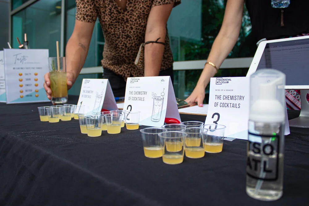The smell of summer is in the air – and so is the humidity. Even though the official start of the summer solstice isn’t until Sunday, June 20, we’re definitely already feeling the heat. So what better way to prepare for the long days ahead than by cooling down with a refreshing drink – AND learning something new? Enter our Mind of a Maker activation, which focuses on a demonstration, workshop, or creative activity with community members. For this particular event that we and the dynamic duo of Bar Racho hosted at Technology Enterprise Park (TEP) last week, it was all about The Chemistry of Cocktails.