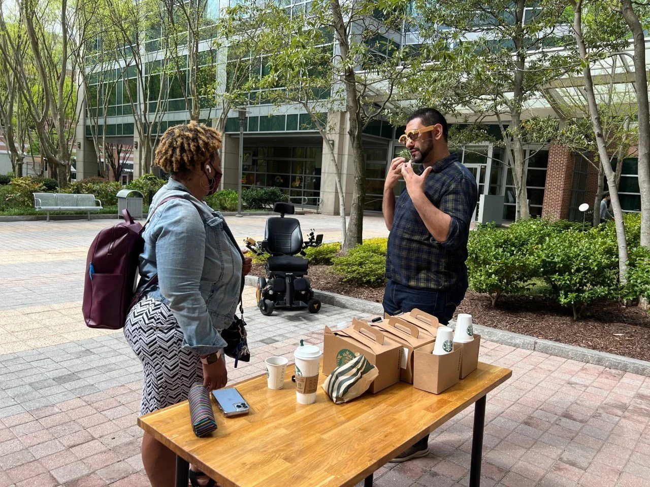 On what we hope to be one of many beautiful spring days, we popped up on Wednesday afternoon in the Tech Square courtyard to get some fresh air, sunshine, and answers – all around accessibility.
