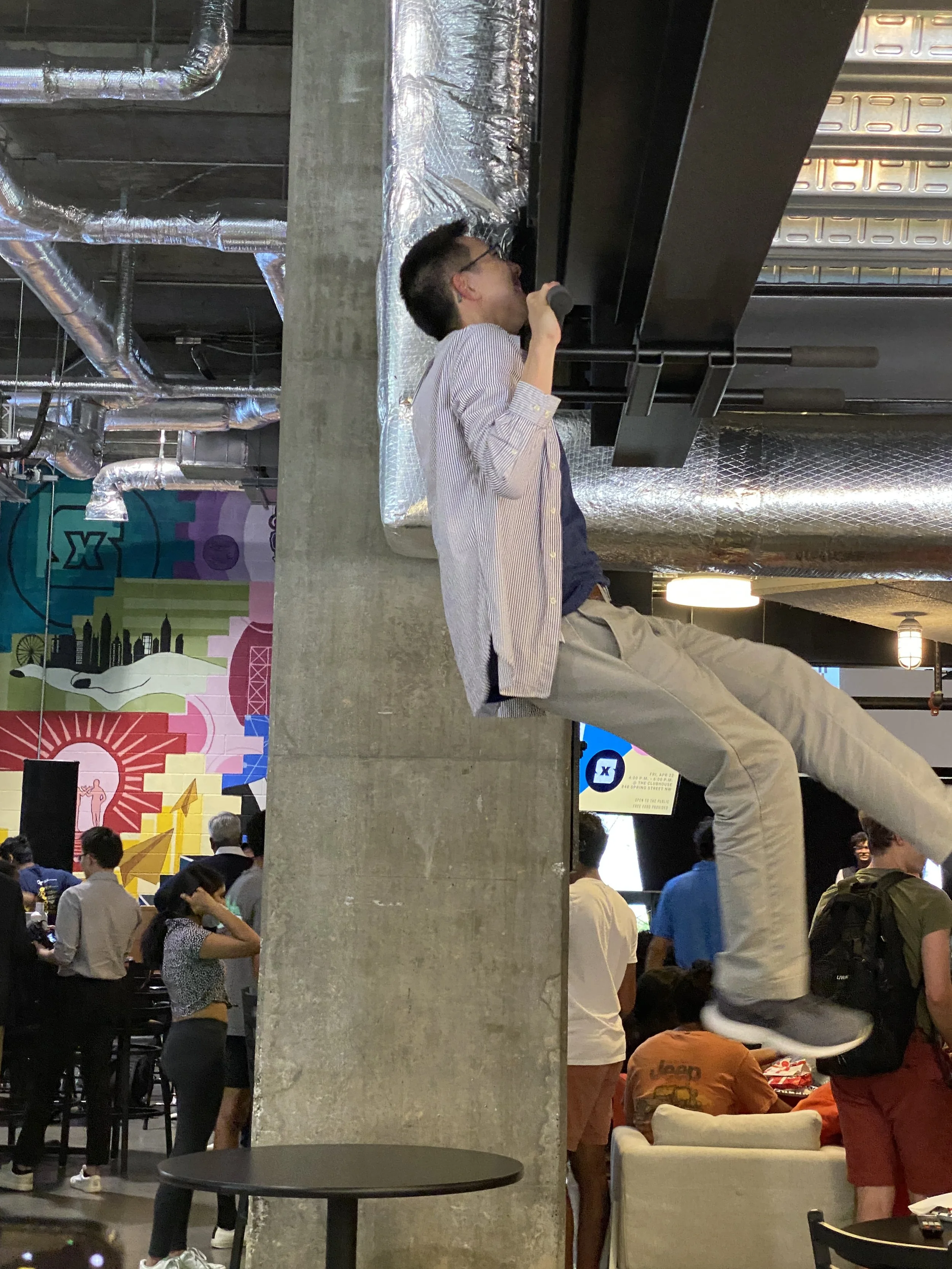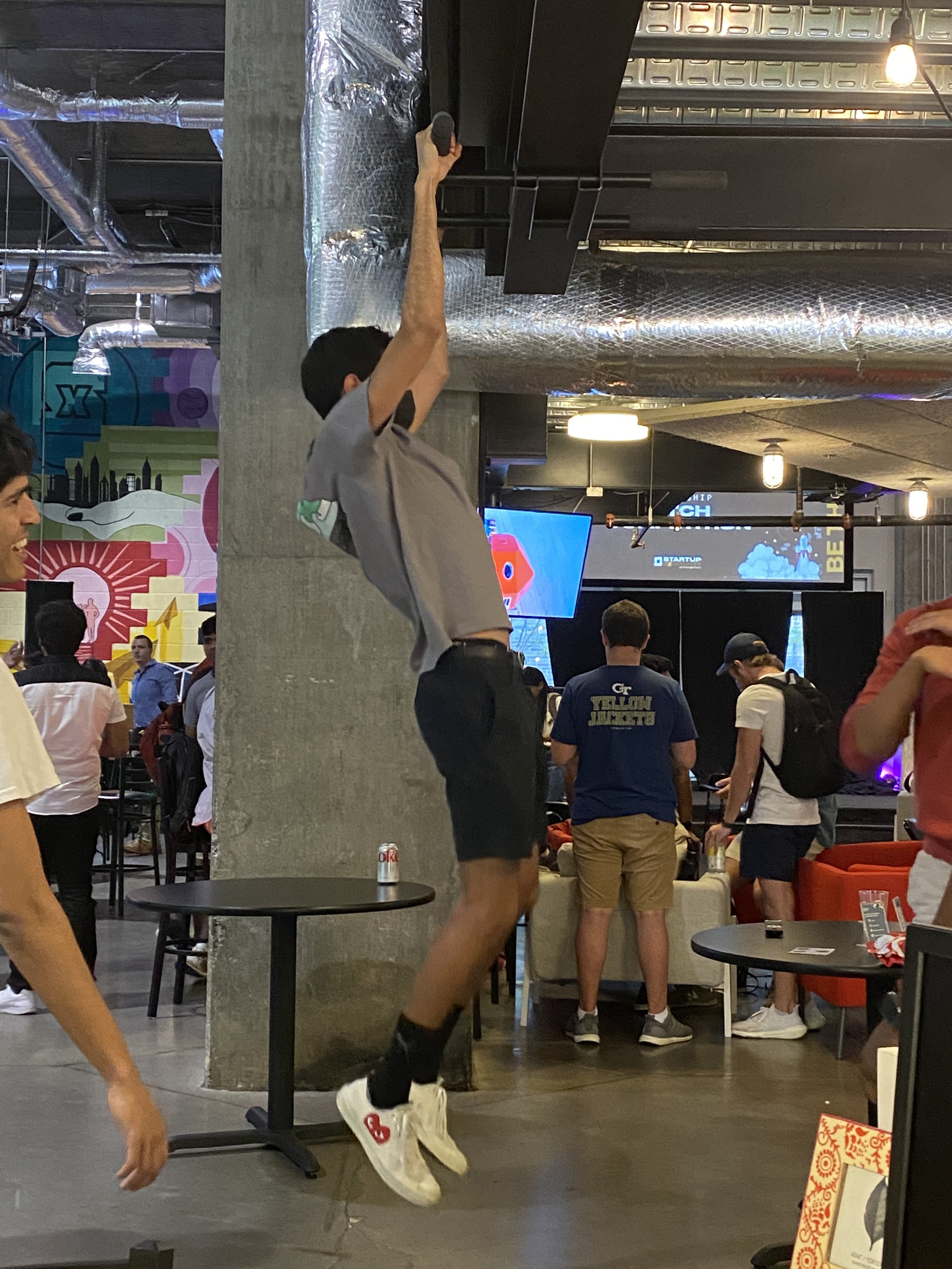 Attendees also discussed the presentations and speculated over who the winners would be. Of course, there was also a quick break to do some pull-ups.