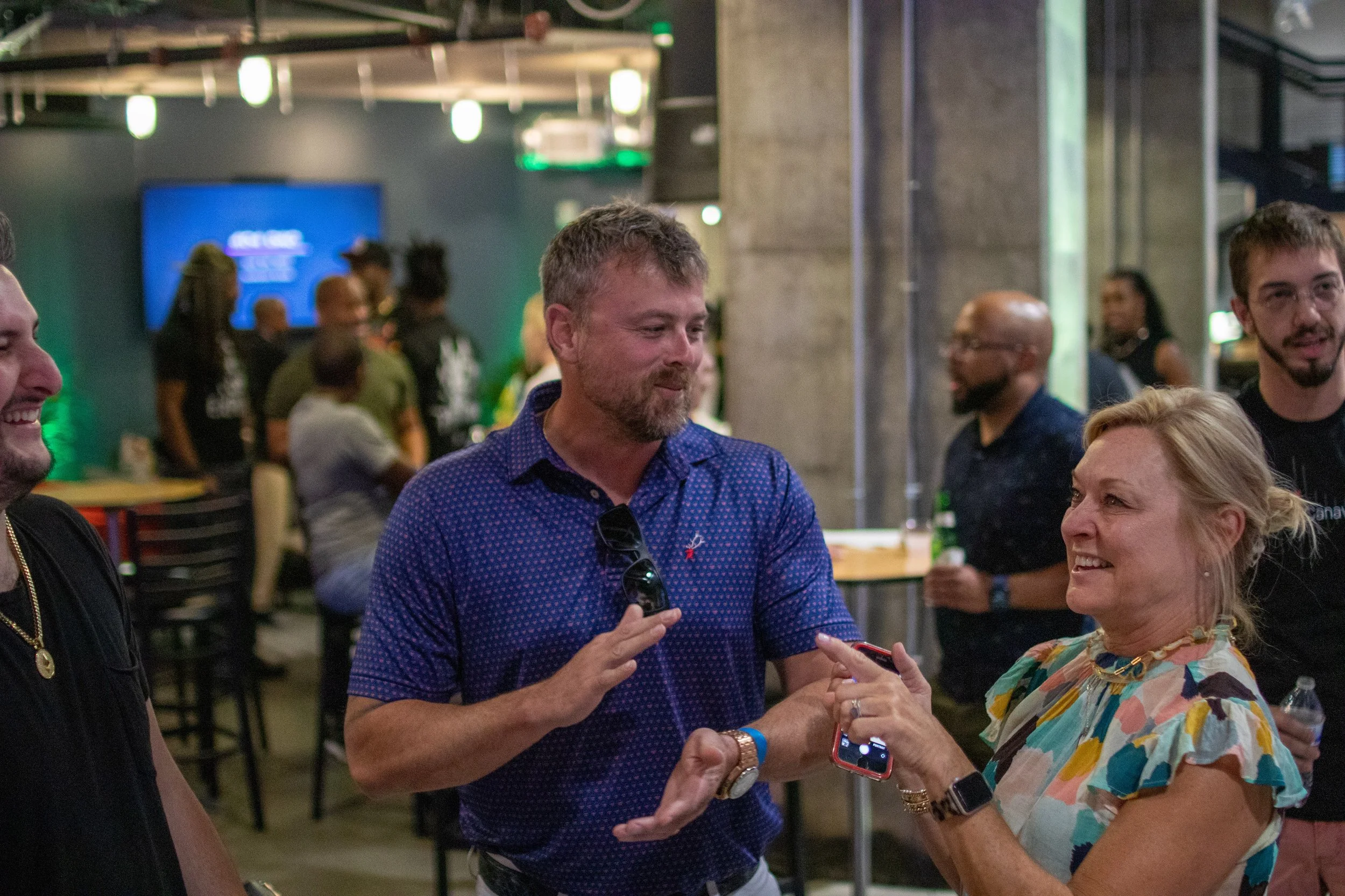 The evening began with a food and cocktail hour, which served local Georgia wine from The Cottage Vineyard & Winery, for the nearly 100 attendees. Introductions were made and previous connections were reunited as they enjoyed complimentary appetizers and catered barbeque. More so, the hosts officially launched their tokenized loyalty program with Keyspace Studio, and everyone present was able to claim a digital collectible for attending the event. This is the first collectible of many that will be used to reward community members who support and contribute to 404 DAO.