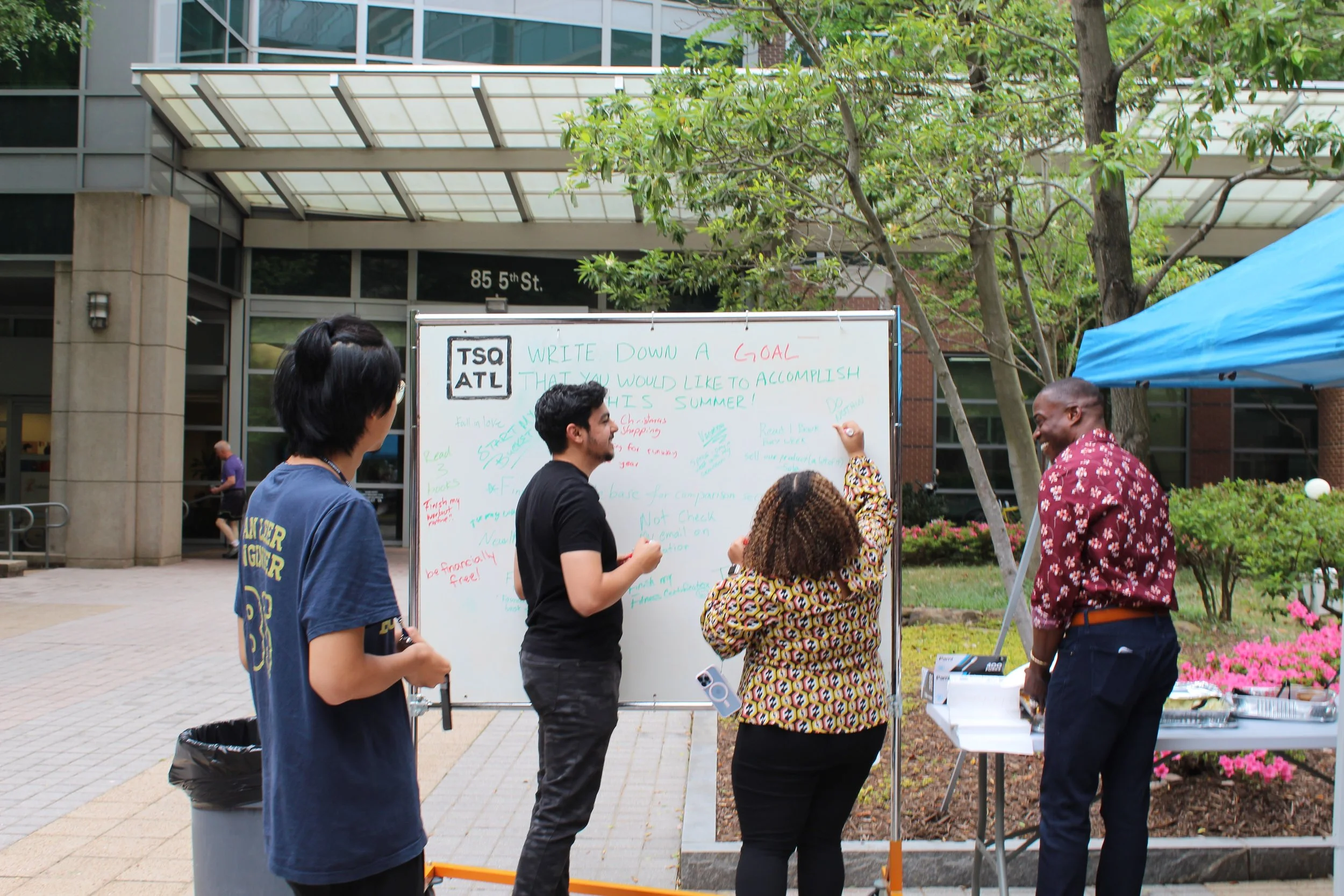 As the end of the school semester starts to wind down, many are gearing up for summer – a time typically synonymous with relaxing, traveling, or disconnecting from the everyday grind. But being the overachievers we are at Tech Square ATL (TSQATL), we thought we’d do the opposite and start goal-setting proactively! So we took to the Tech Square courtyard to host a community cookout centered around connecting with others and sharing current ambitions for the upcoming season.
