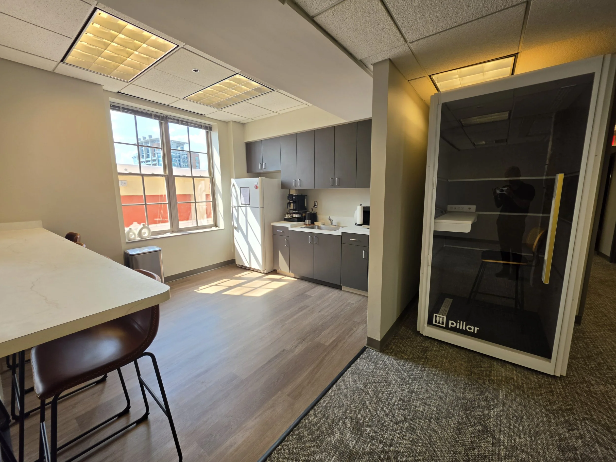 Phase II of the coworking and office space on the 11th floor of the Biltmore Innovation Center, is now complete. The expansion adds private offices, additional coworking areas, phone booths, the Skywave Boardroom, and a shared kitchen.